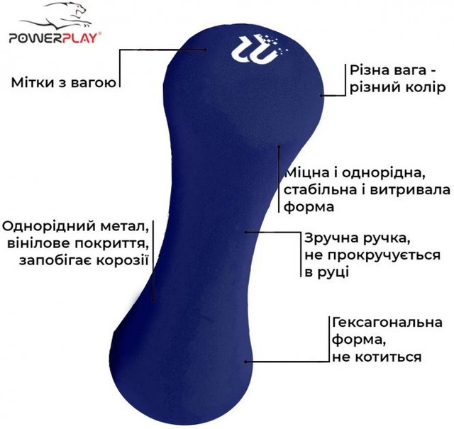 - це ідеальний інструмент, за допомогою якого можна тренувати та зміцнювати плечового поясу: плечей, передпліччя та грудей. Гантелі ідеально підходять для занять аеробікою, силових тренувань, розвитку витривалості, а також для реабілітації. Контурна форма і не антиковзальне покриття, делікатно структурована поверхня гарантують надійний і комфортний хват. Вага гантелей, зображена збоку виробу, полегшує їх ідентифікацію. Завдяки малим розмірам, гантелі PowerPlay надзвичайно прості для зберігання та транспортування - вони легко вмістяться у вашу сумку або рюкзак, тому ви можете взяти їх куди завгодно!